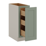 9" & 12" Wide 14SG Sage Green Shaker 1-1/4" Overlay Spice Rack Pull Out Base Cabinet