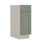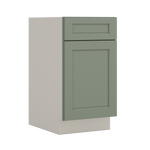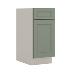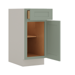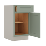 9"(No Drawer), 12", 15", 18", 21" 14SG Sage Green Shaker 1-1/4" Overlay Base Cabinet - One Door One Drawe