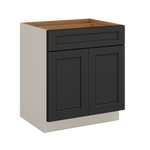 Base Cabinet - Two Doors 24", 27", 30", 33 & 36" Wide 15HNS Hermosa Noir Black Shaker 1-1/4" Overlay