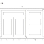 Bathroom Side Drawers Vanity Sink Base Tuscan Gray Inset Shaker Cabinets - 21" Deep 30", 36" & 42"