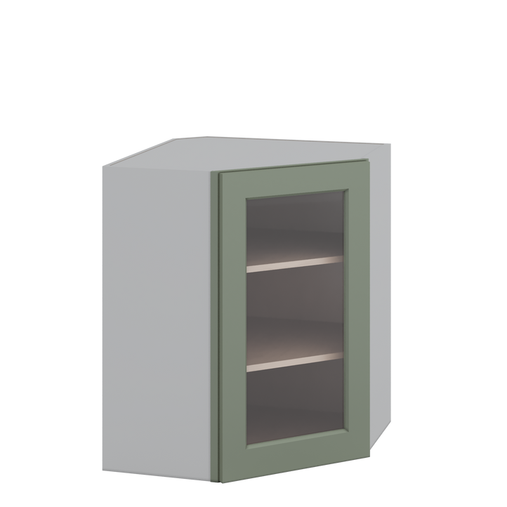 Diagonal Corner Green Shaker 1-1/4" Overlay Glass Ready Wall Cabinet 24" Wide by 30", 36" & 42" Tall