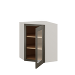 Diagonal Corner Huntington Cinder Double Shaker Glass Ready Wall Cabinet 24" Wide by 30", 36" & 42" Tall