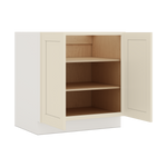 24"-36" Wide Full Height Door Base Cabinet include a pair of doors which "1-1/4" Overlays" wider and taller than the opening in the face frame with the minimum face frame showing....