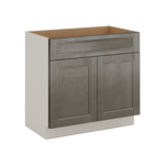 Our 24", 27", 30" & 36" Vanity sink base cabinets are 21"s deep and 34-1/2"s tall (same height as kitchen cabinets) in the Huntington Cinder Double Shaker 1-1/4" style are the...