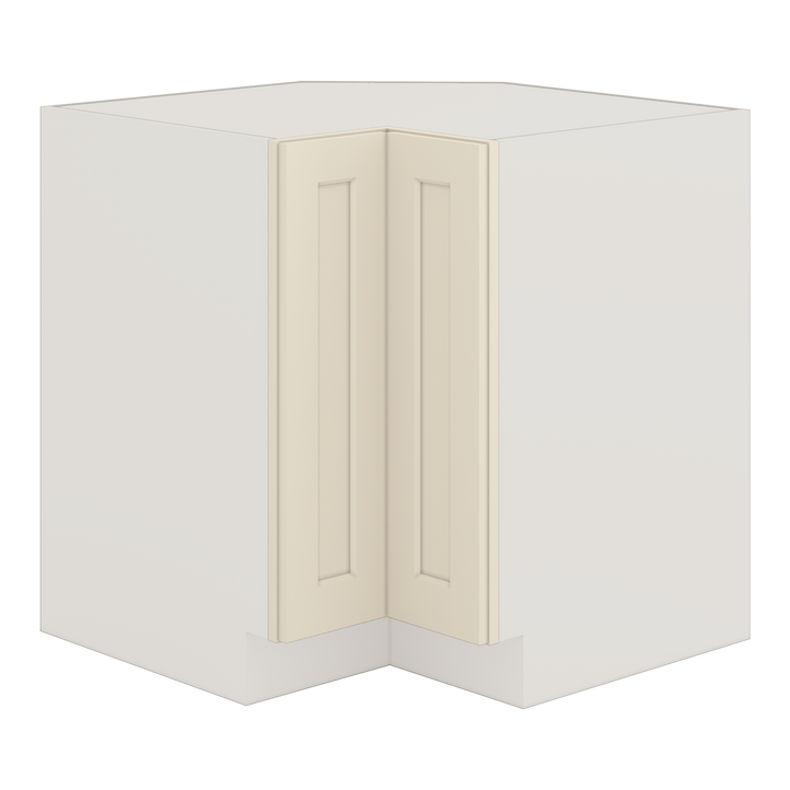 Base Lazy Susan Cabinet is available 36" wide (Each direction) by 24" deep by 34-1/2" tall. 1-1/4" Overlay Manhattan Cream Shaker Lazy Susan base kitchen cabinet RTA (Ready to Assemble). Assembly...