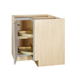 Lazy Susan Base cabinet 33" or 36" from corner each direction by 24" deep by 34-1/2" tall. Tuscan Gray Inset Shaker base kitchen cabinet RTA (Ready to Assemble). The front of the...