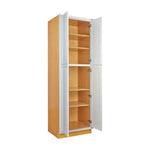 Tall pantry cabinet 84" tall (24", 30, and 36" wide) by 24"deep. Vintage White Raised Panel pantry wall kitchen cabinet RTA (Ready to Assemble). The front of the cabinet has two (2) doors on top and...