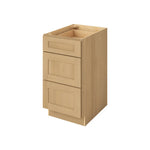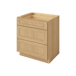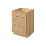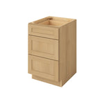 3 Drawer Base Cabinet 12", 15", 18", 21", 24", 30", 33" & 36" Wide Sandstone Birch Shaker 1-1/4" Overlay