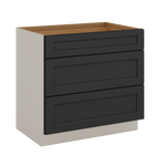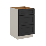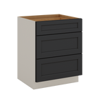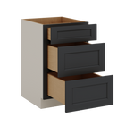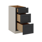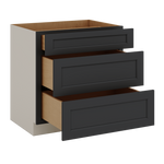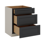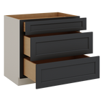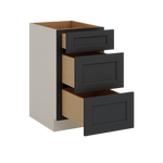 Three Drawer Base Cabinet 12", 15", 18", 21", 24", 30", 33" & 36" Wide 15HNS Hermosa Noir Black Shaker 1-1/4" Overlay