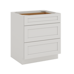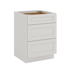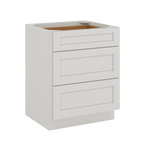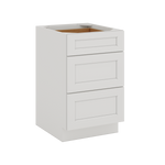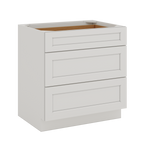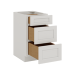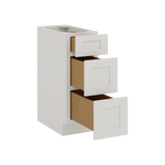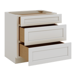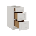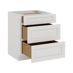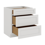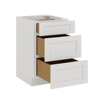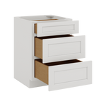 Three Drawer Base Cabinet 12", 15", 18", 21", 24", 30", 33" & 36" Wide 2WS White Shaker 1-1/4" Overlay