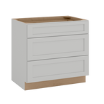 12", 15", 18", 21", 24", 30" & 36" Three Drawer Base Cabinet | RTA Unassembled | Premium Shaker White Full Overlay