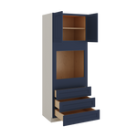 Wall Oven cabinet by 24"deep. 1-1/4" Overlay 29NB Naval Blue Shaker Wall Oven kitchen cabinet RTA (Ready to Assemble). The front of the cabinet has two (2) doors with soft close hinges above the...