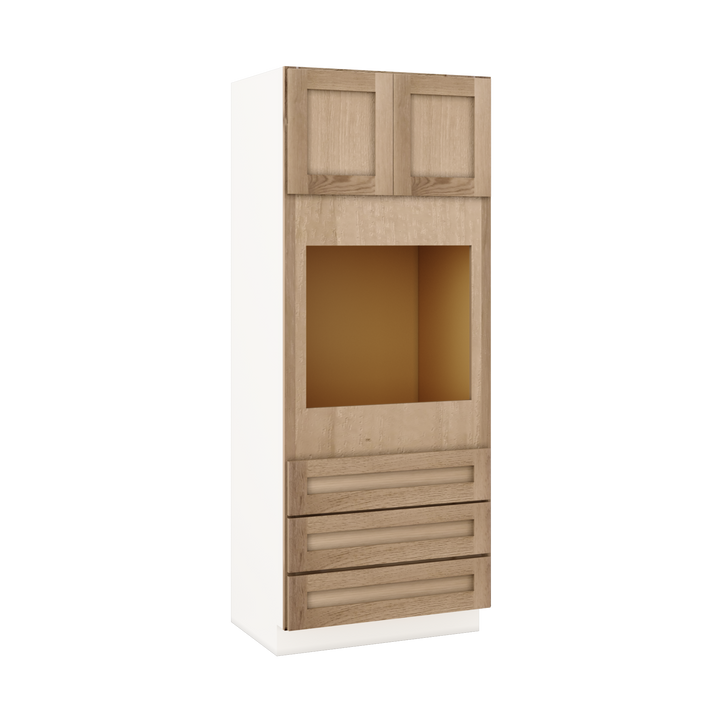 Wall Oven cabinet by 24"deep. 1-1/4" Natural 17ROS - Redondo White Oak Shaker Wall Oven kitchen cabinet RTA (Ready to Assemble). The width of the opening is 27 with a total height...
