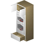 The front of the cabinet has two (2) doors with soft close hinges above the ovens and a drawer below the ovens on full extension soft closing hardware.