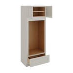 Wall Oven cabinet by 24"deep. 1-1/4" Overlay White Double Shaker Wall Oven kitchen cabinet RTA (Ready to Assemble). The front of the cabinet has two (2) doors with soft close hinges above...