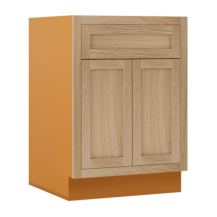 White Oak Inset Shaker Base Cabinet - Double Door 24"-27" Wide
