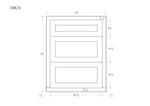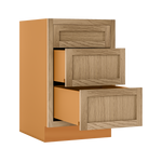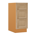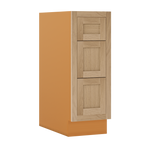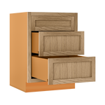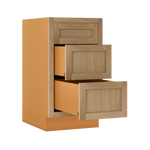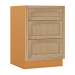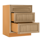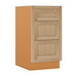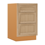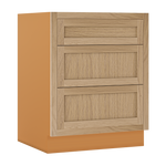 White Oak Shaker Inset Three Drawer Base Cabinet - 12", 15", 18", 21", 24",27", 30", 33" & 36" - Special Order