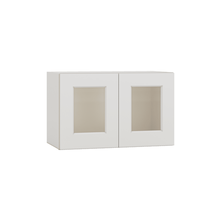 15" Tall 2WS White Shaker Stackable Glass Wall Cabinet - Double Door 24", 27", 30", 33" & 36" Wide